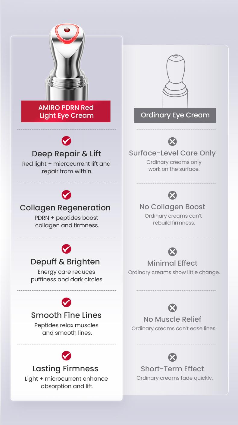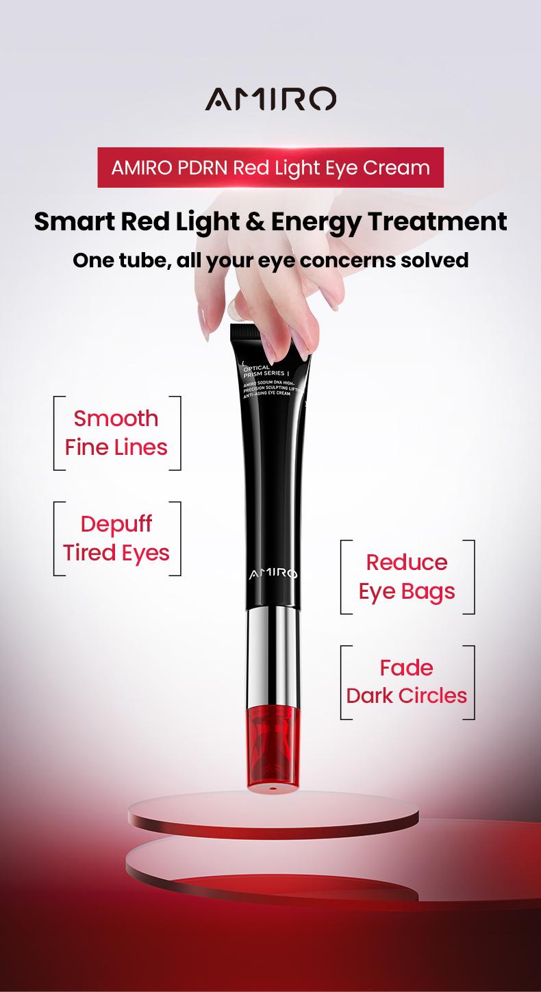 AMIRO PDRN Red Light Eye Cream, Anti-Aging Eye Treatment for Dark Circles and Puffiness, Repairing & Firming Eye Cream with PDRN & Red Light Therapy, Smooth Fine Lines and Reduce Eye Bags