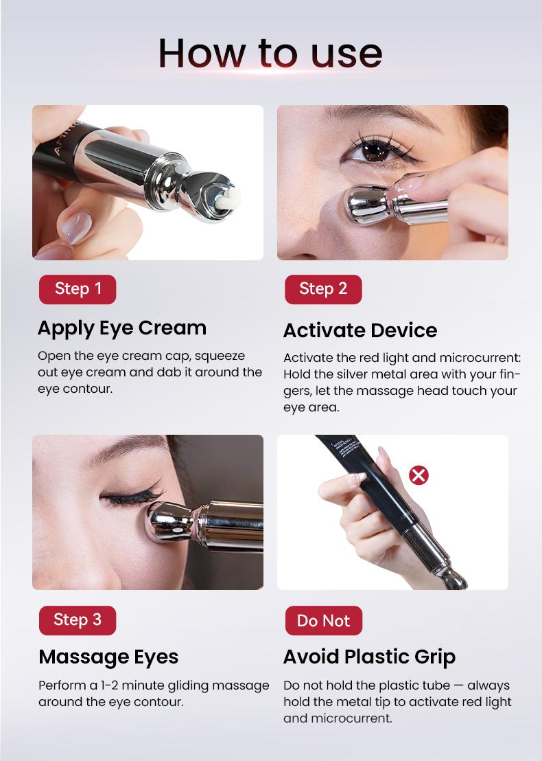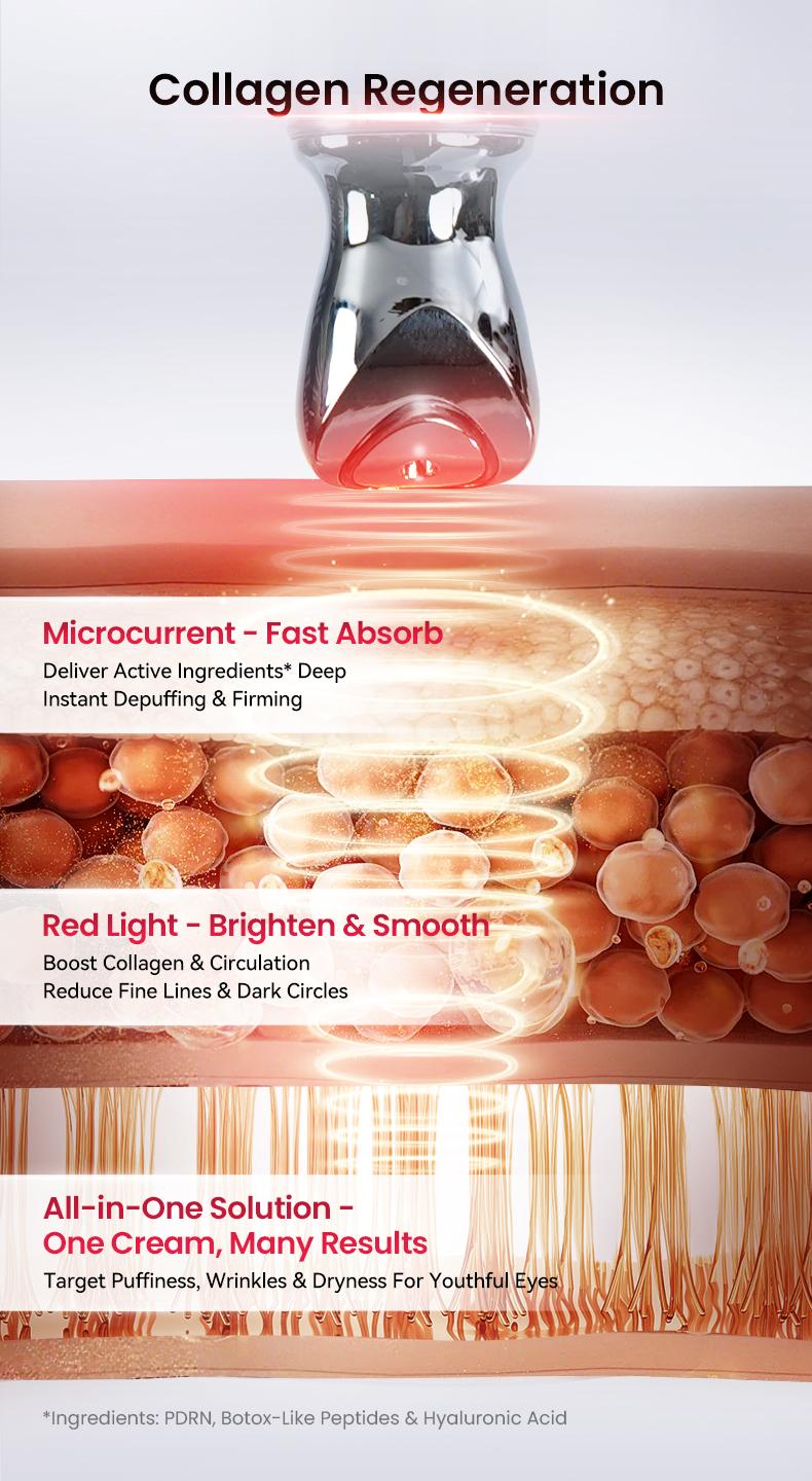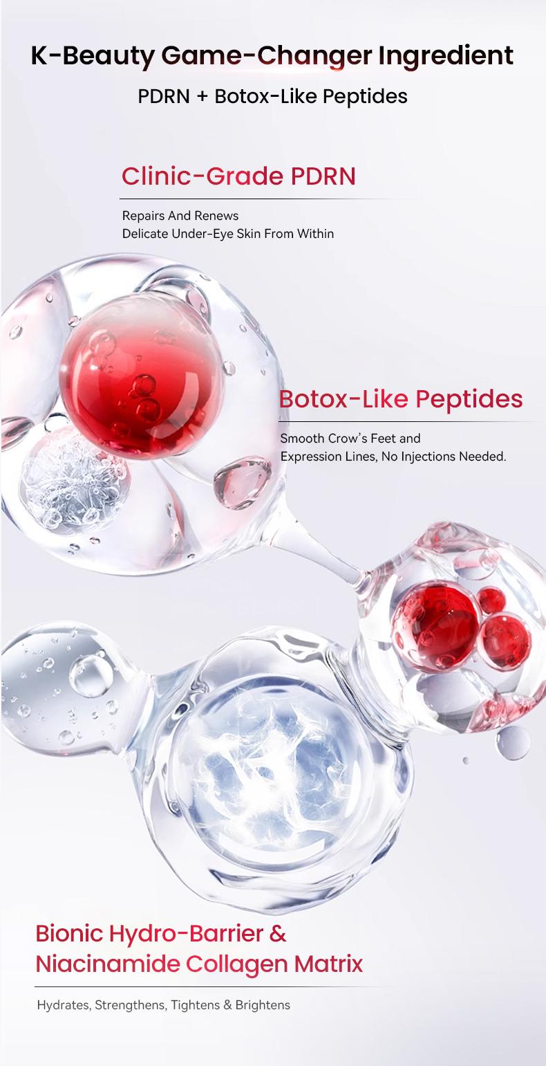 1. Dual-Tech Repair with PDRN & Red Light: Combines advanced red light energy with PDRN (Polydeoxyribonucleotide) to boost cell regeneration, improve elasticity, and deeply rejuvenate the delicate eye area.