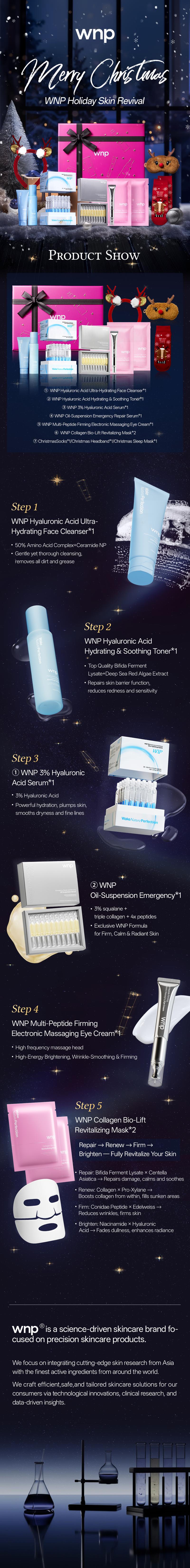 [WNP Official] WNP Holiday Skin Revival | Cleanser + Toner + HA Serum + Oil Serum + Eye Cream + Collagen Mask + Christmas Warm Set | 4D Hyaluronic Acid, Ceramides, Peptides, Centella Asiatica Extract, Collagen | Hydrating Skin | Gift of Choice